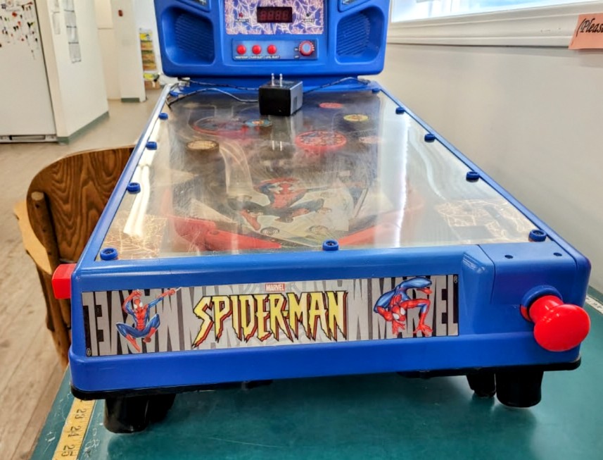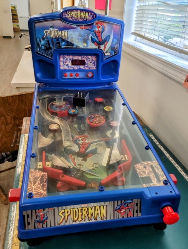 Grant, the dimensions for the pinball machine are 30″x16″. It’s a table top item.