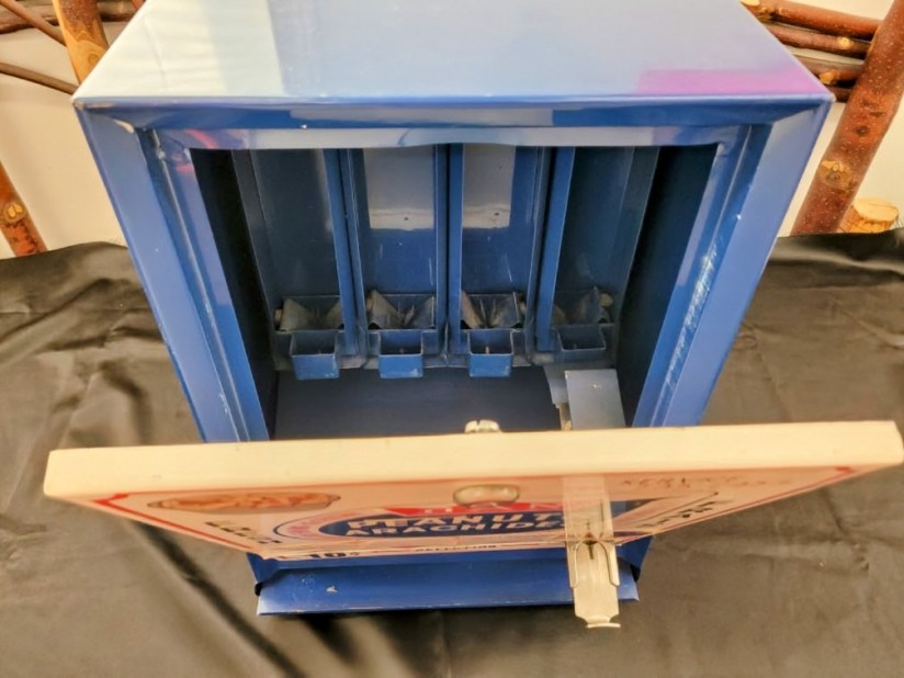 Grant, the staff member who checked it said mechanically it should work fine. You can put 4 different treats in it and you move the coin slider under the one you want. We do not have a key to lock the lock though. I’ve uploaded another picture to the post that shows a close-up view of the candy labels.