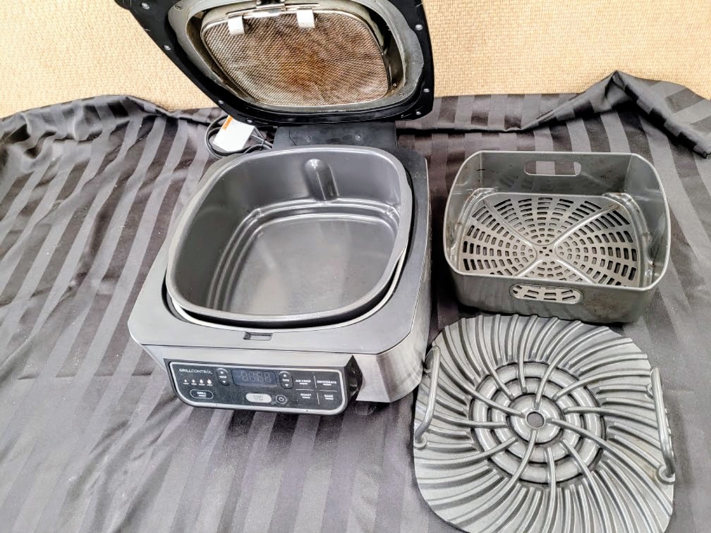 It is designed to grill, air crisp, roast, bake, and dehydrate food. It uses “Cyclonic Grilling Technology” to circulate hot air for even cooking.
