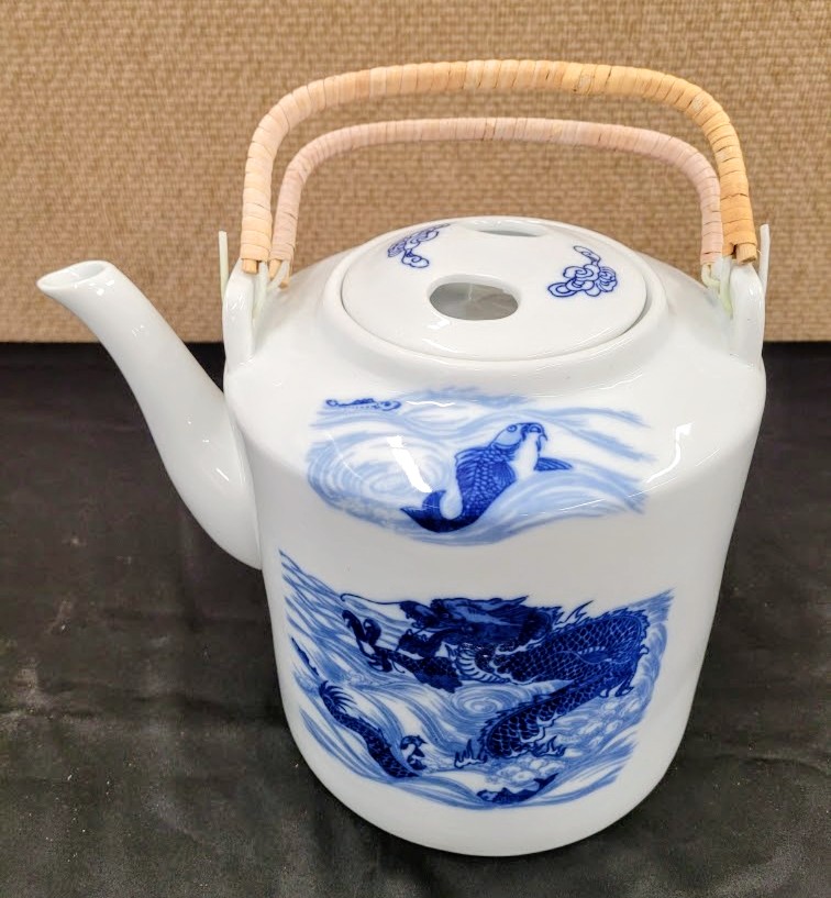 1 thought on “Auction Item: Large Blue & White Chinese-Style Porcelain Teapot with Wicker-Wrapped Handle (Marked, China)”