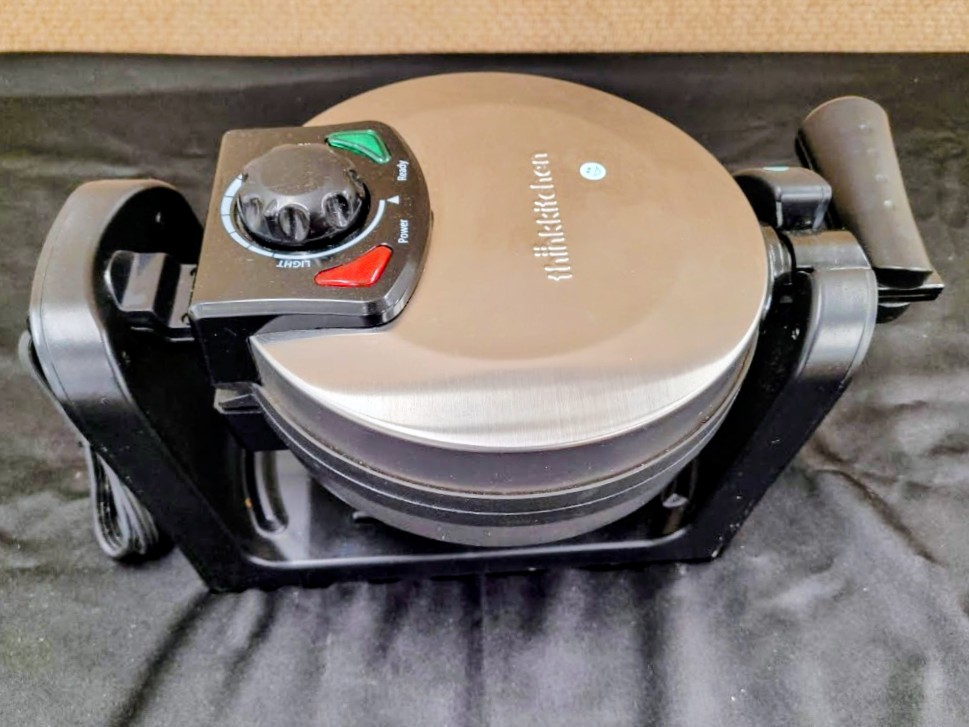 This waffle maker has a 180-degree rotation function for even cooking.