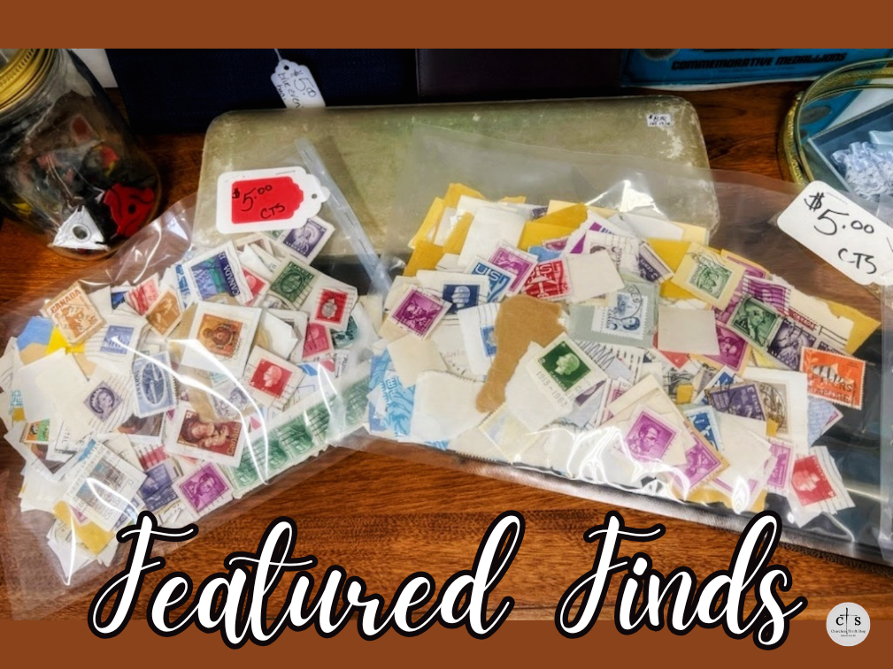 These assorted bags of vintage postage stamps are a fun find for collectors and crafters alike.