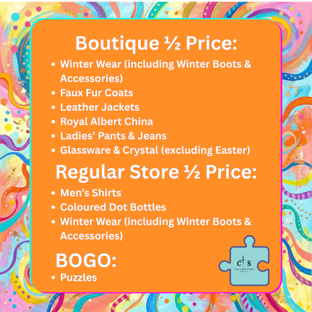 Churches Thrift Shop’s Online Auctions are now closed. Thank you for your support.