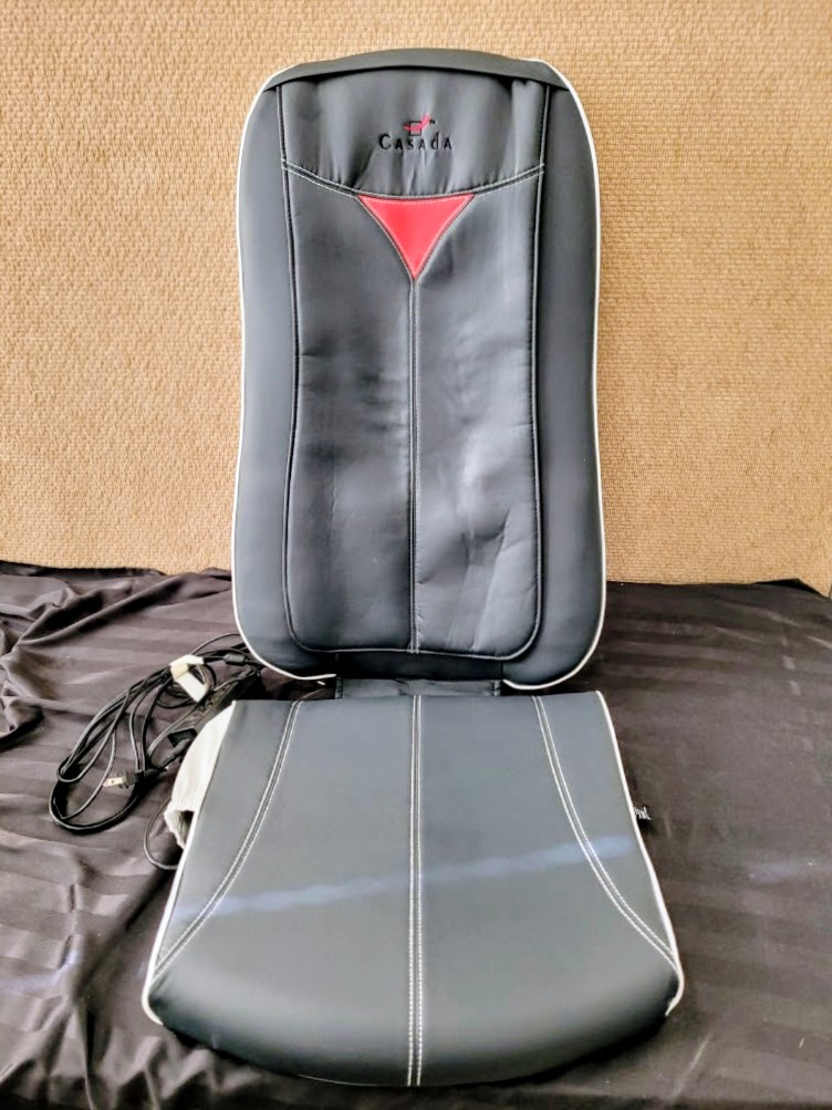 This is a portable massage seat. It offers shiatsu, rolling, and tapping massages with jade stone massage heads that provide a kneading sensation.